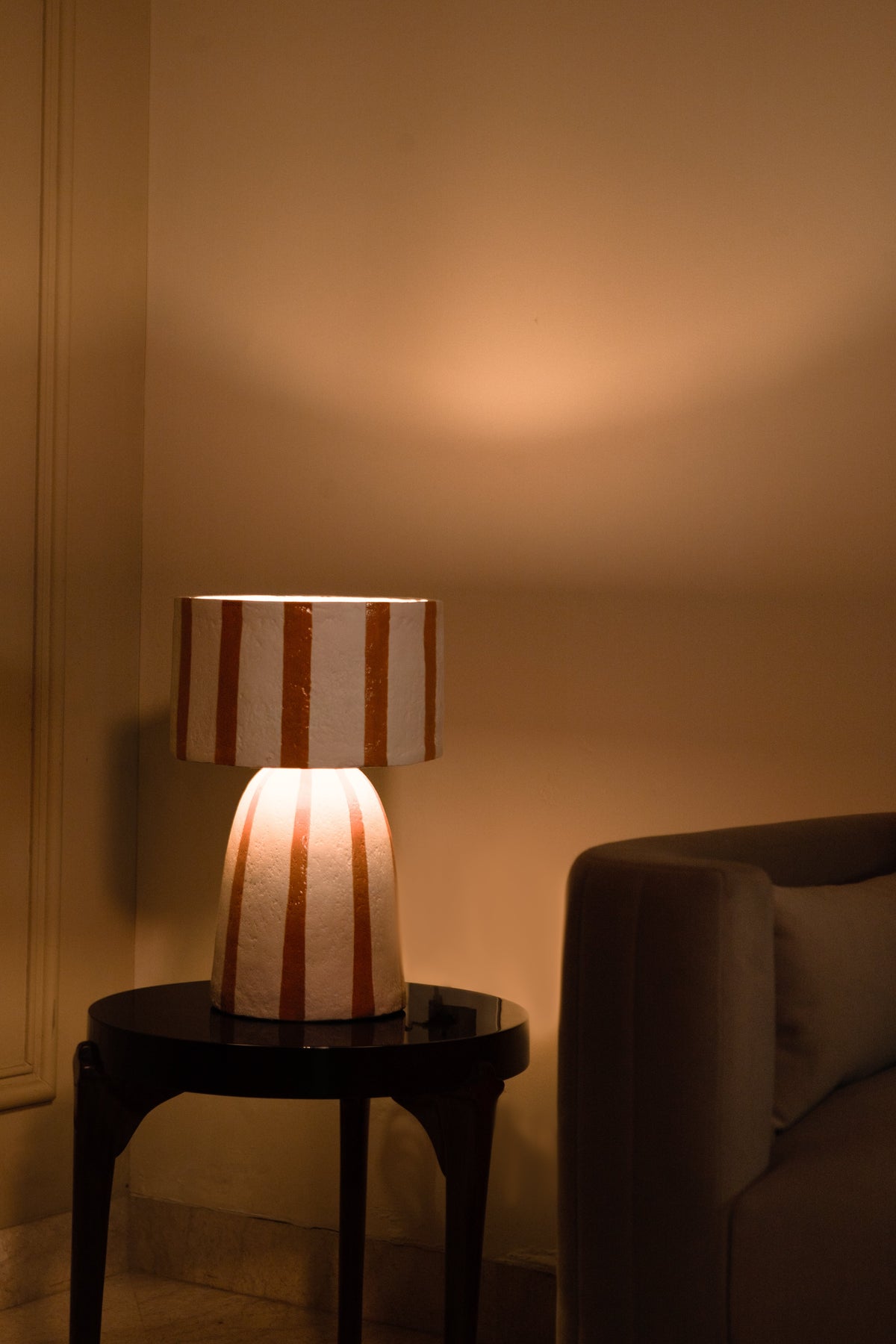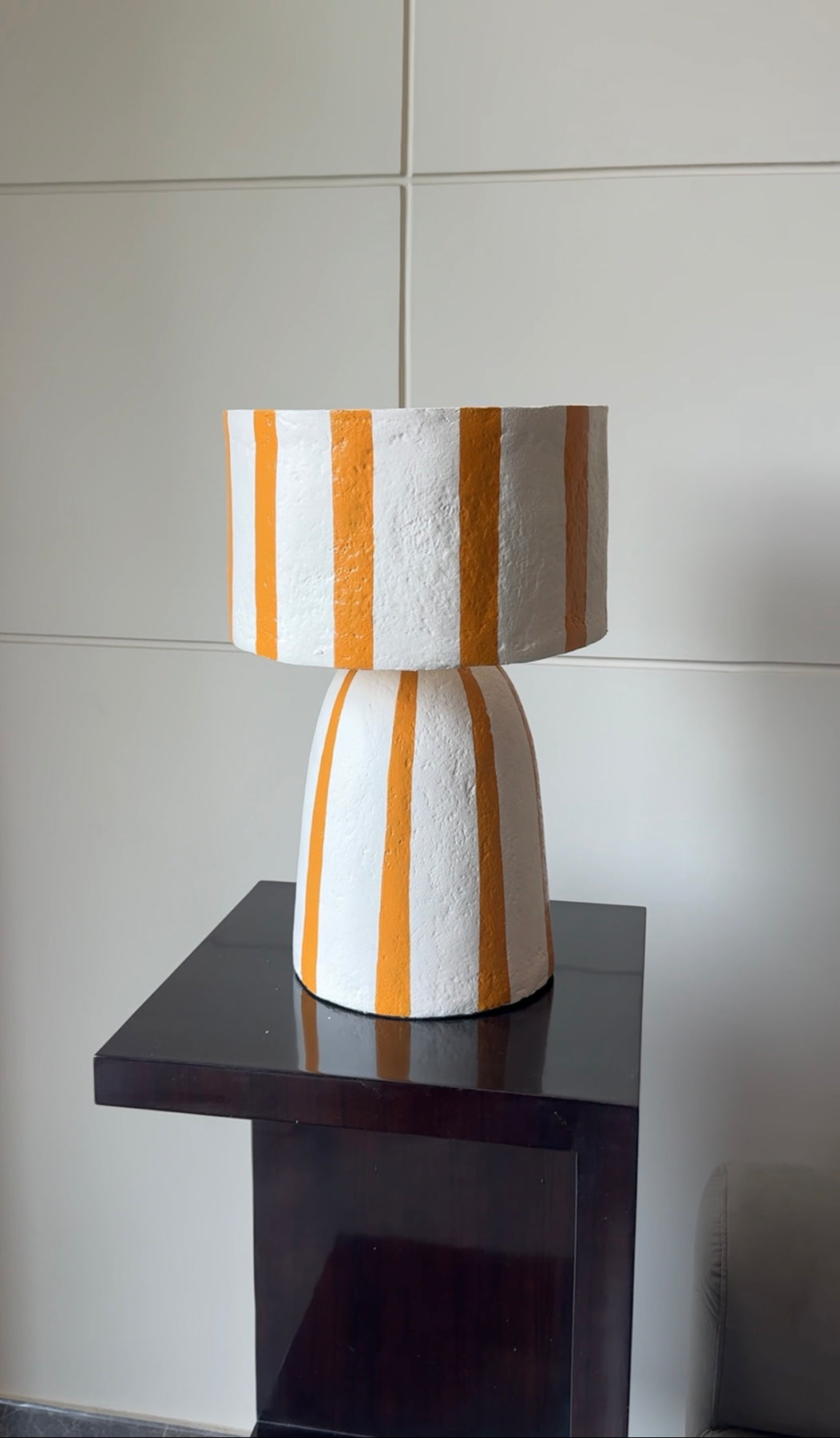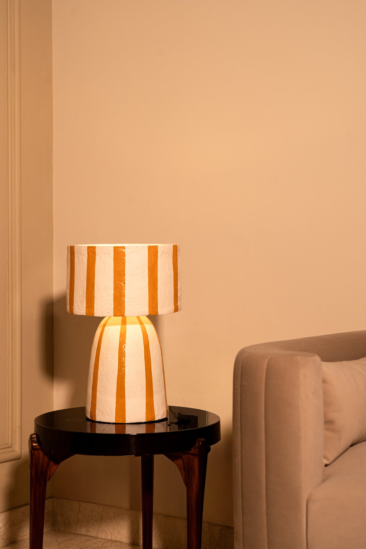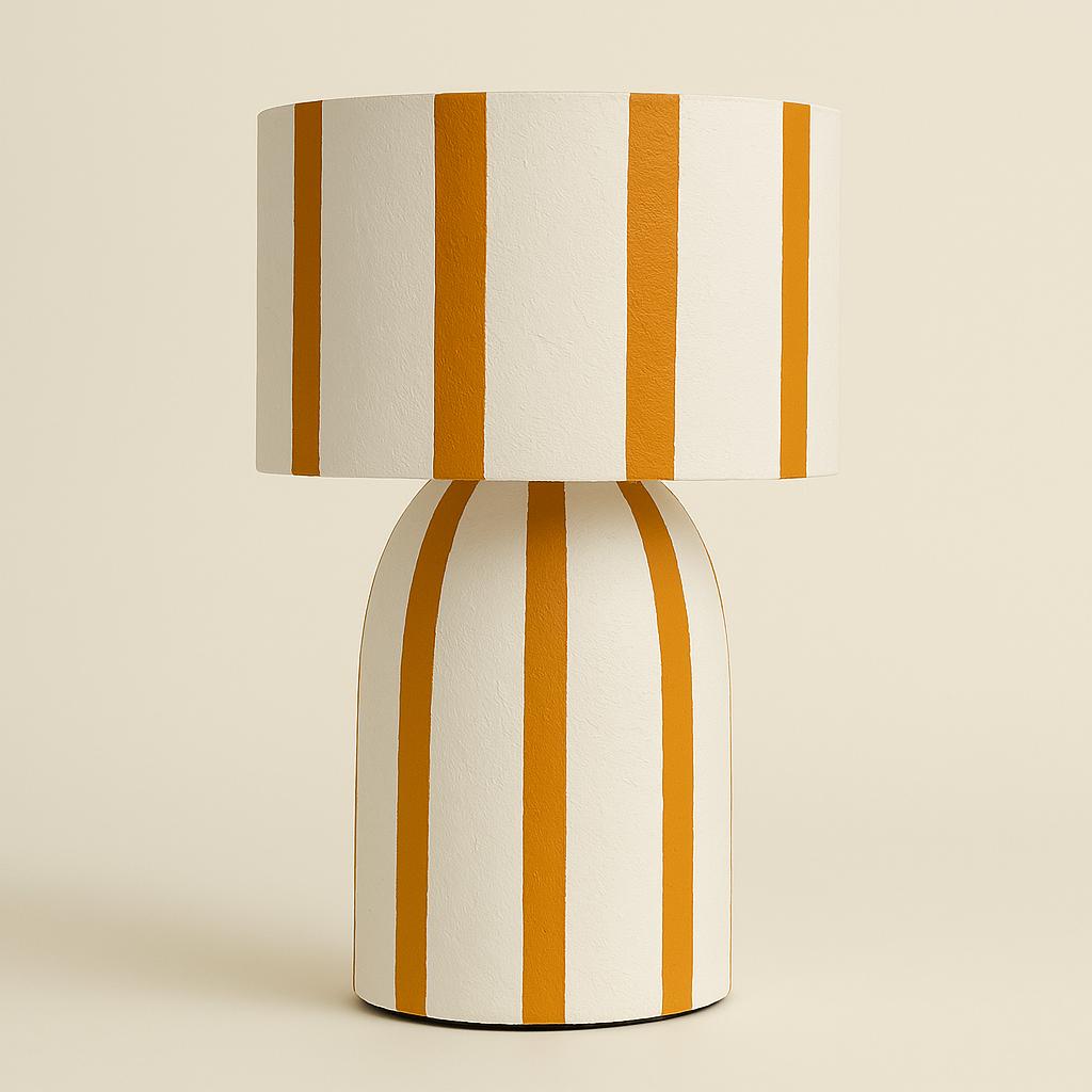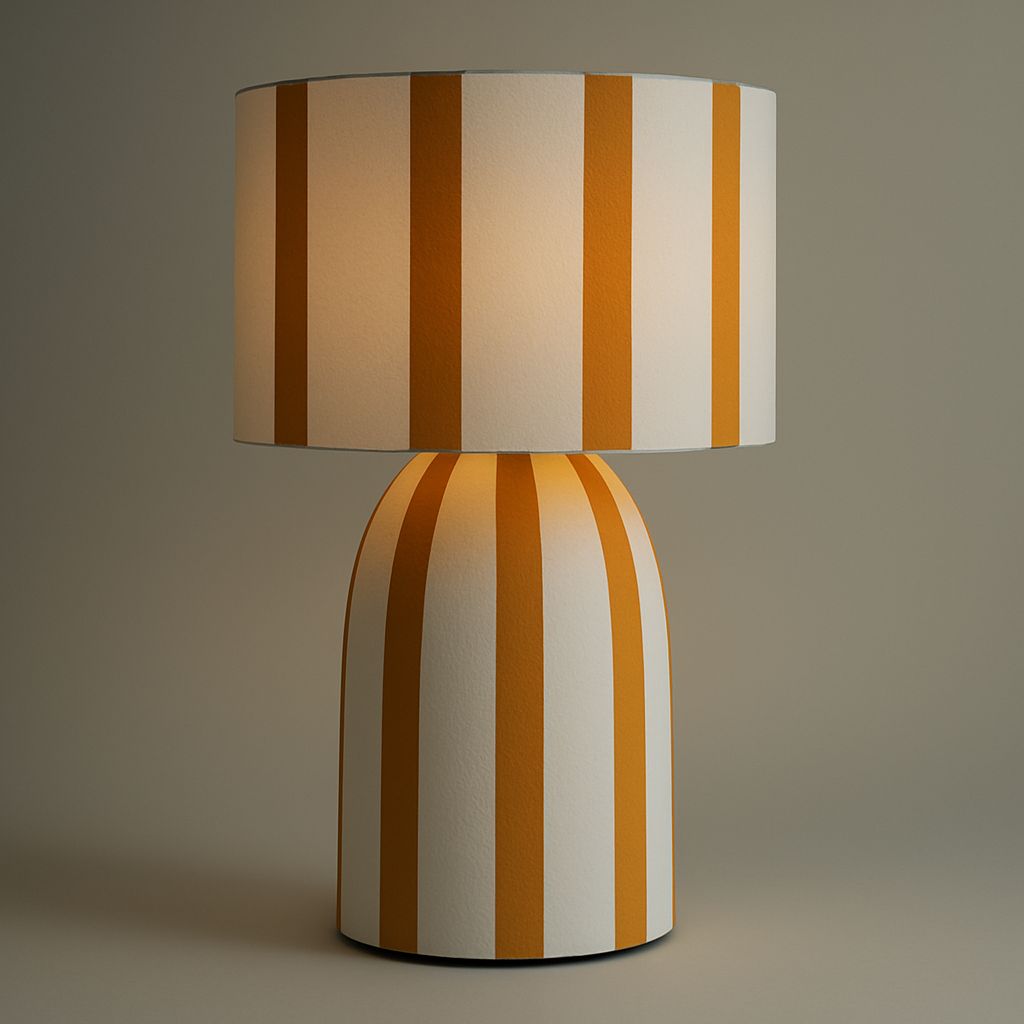 Bring warmth and personality to your space with the Solace Table Lamp. Featuring bold mustard stripes on a smooth, neutral base, this eye-catching lamp is perfect for adding a playful yet sophisticated touch to any room. Its soft, ambient glow creates a cozy atmosphere—ideal for bedrooms, living rooms, or reading nooks.
